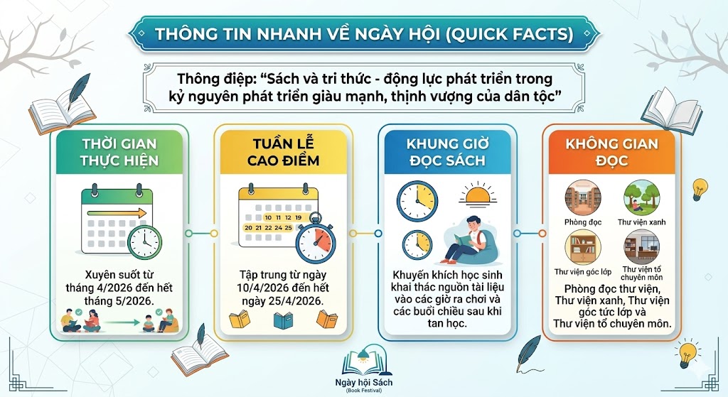 Trong đời sống tinh thần của mỗi người, sách đóng vai trò vô cùng quan trọng: là chiếc chìa khóa vạn năng mở cửa lâu đài trí tuệ. Đặc biệt với tập thể sư phạm và học sinh Trường THCS Nam Thanh, sách còn là người thầy siêu việt, dạy chúng ta cách sống, sự hy sinh và hướng tới những giá trị nhân văn cao đẹp. Việc bồi đắp văn hóa đọc, nhất là cho thế hệ trẻ, chính là hành trang cần thiết để nâng cao tri thức, rèn luyện kỹ năng và nuôi dưỡng khát vọng cống hiến cho xã hội. Để ngày hội thực sự đi vào chiều sâu và lan tỏa đến toàn thể học sinh ở tất cả các khối lớp, nhà trường triển khai kế hoạch với khung thời gian và địa điểm cụ thể như sau: